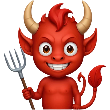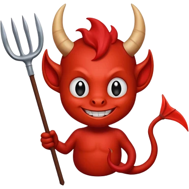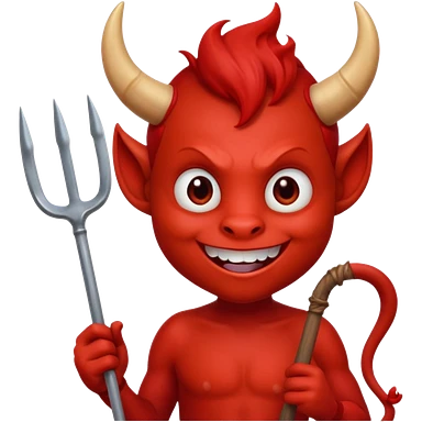 a Red devil, Small red imp holding pitchfork, tail curled emoji | AI Emoji Generator