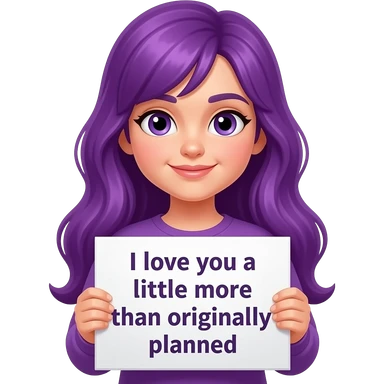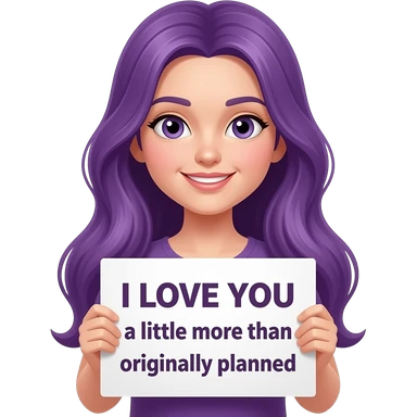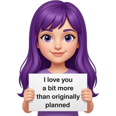 girl with long purple hair holding a ICH MAG DICH ein bisschen mehr als ursprünglich GEPLANT sign emoji