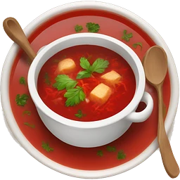 a shark eating red soup with white round pieces floating in it. the shark has a towel on his head and his mouth is watering at the sight of food emoji