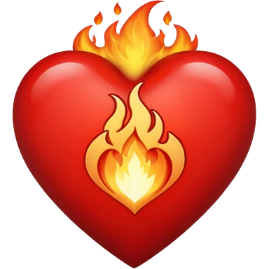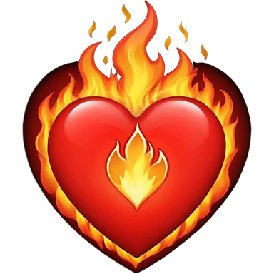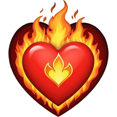 A red heart with bright flames on top, blending realistic fire with a slightly gothic cartoon style. Inside the heart, in small bold gothic text, it says: