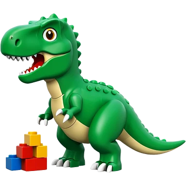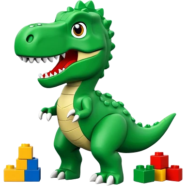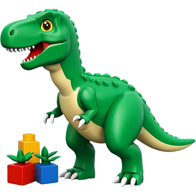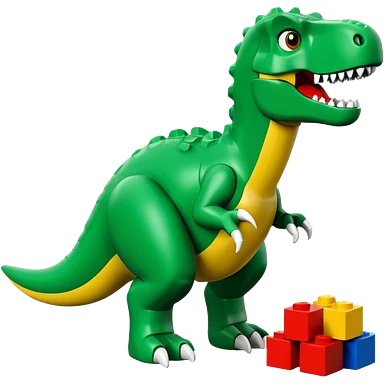 A cute green t-rex building with LEGO bricks emoji