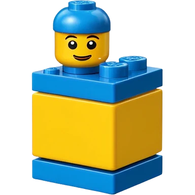 A bright blue Lego building block with big eyes and a happy expression emoji
