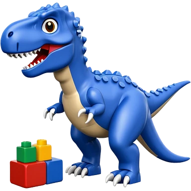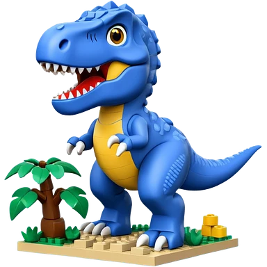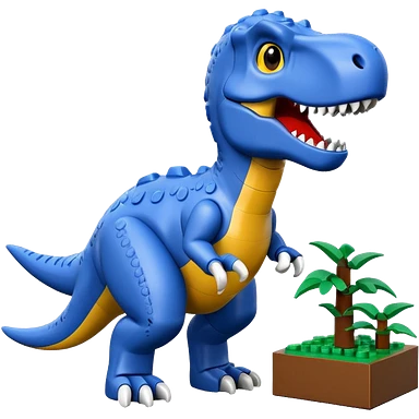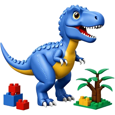 A cute blue t-rex building with LEGO bricks emoji