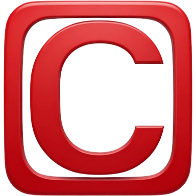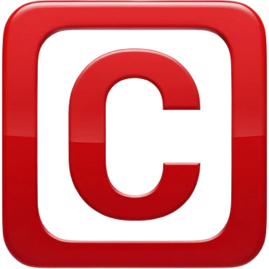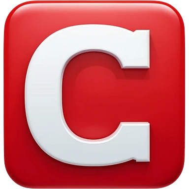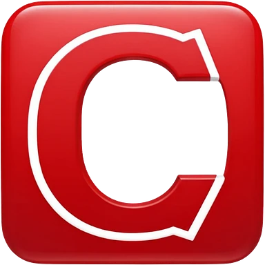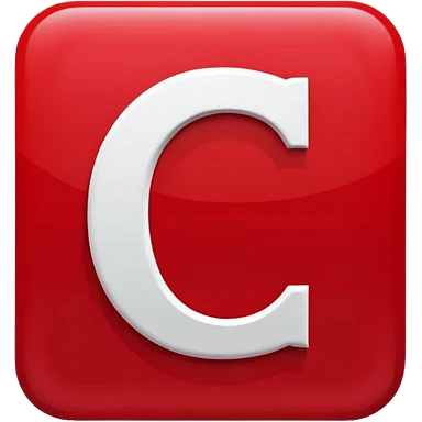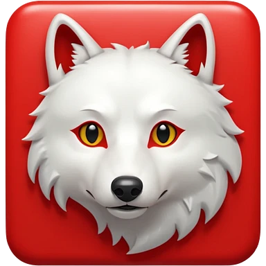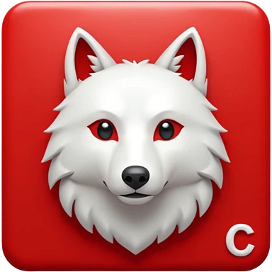 A red rounded square emoji divided in half vertically: on the left, a small red cyber wolf head with glowing eyes in futuristic style; on the right, a bold white capital letter C. Flat emoji design, shiny lighting like ๐