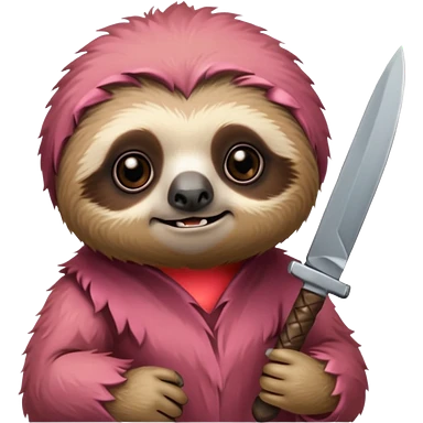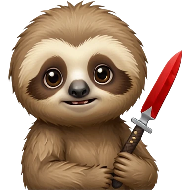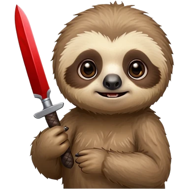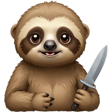 Cute little sloth holding a knife but looking cute but evil emoji