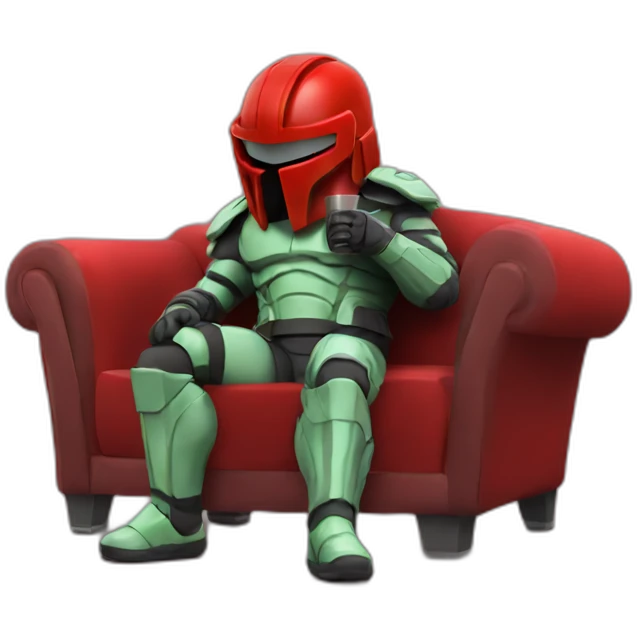 A red spartan drinking a relaxed coktail on a sofa emoji | AI Emoji Generator