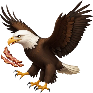 A regal flying bald eagle stealing eating bacon emoji