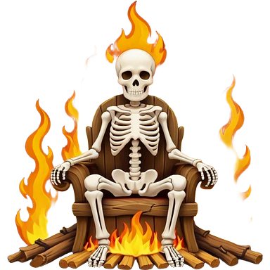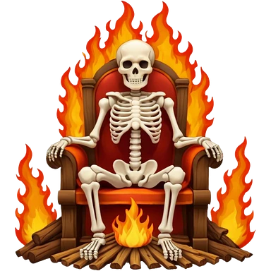 A skeleton sitting on a throne. Throne on fire around him emoji