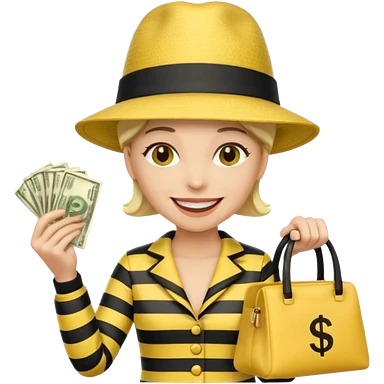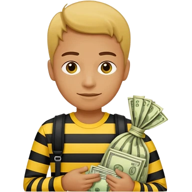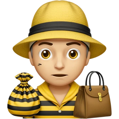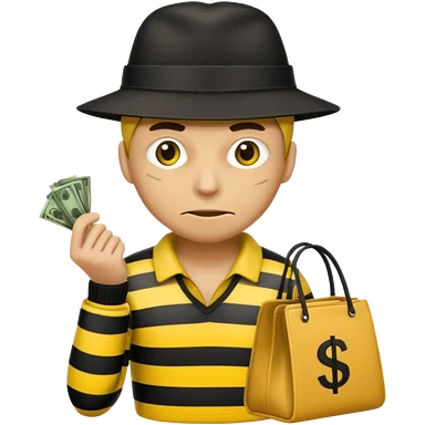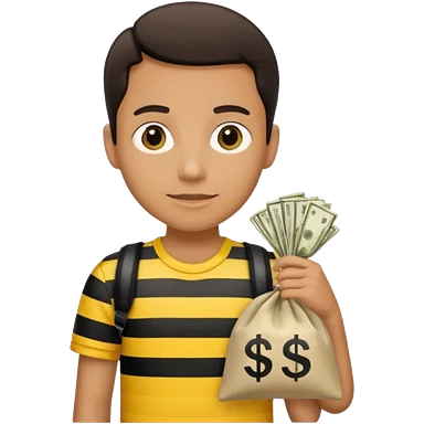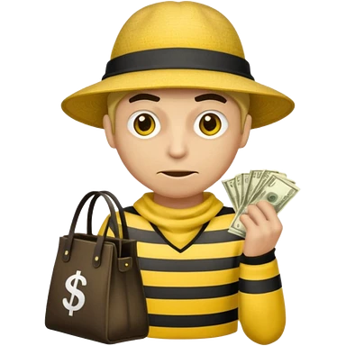 A Robber that just robes a bank** and that has yellow and black stripes that has a bag qith money inside with a chapeau and that looks mean emoji | AI Emoji Generator