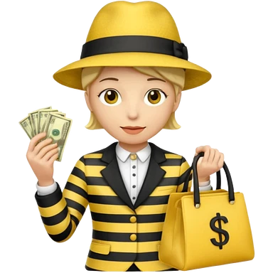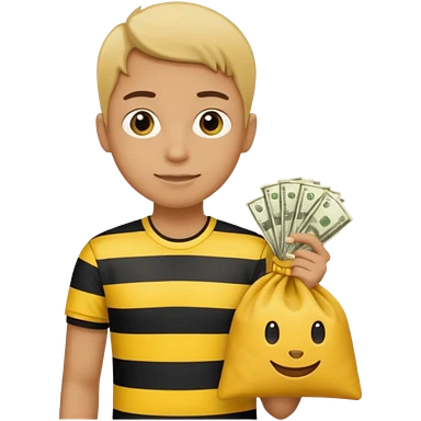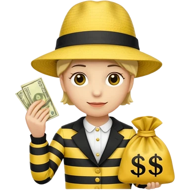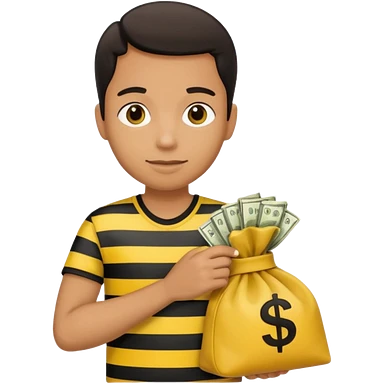 A Robber that just robes a bank** and that has yellow and black stripes that has a bag qith money inside with a chapeau and that looks meanemoji