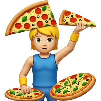 A roblox avatar yellow head arms blue troso green legs and a whole pizza on his head emoji | AI Emoji Generator