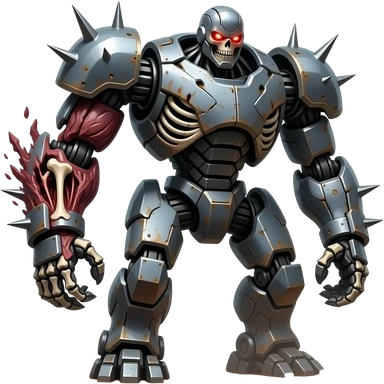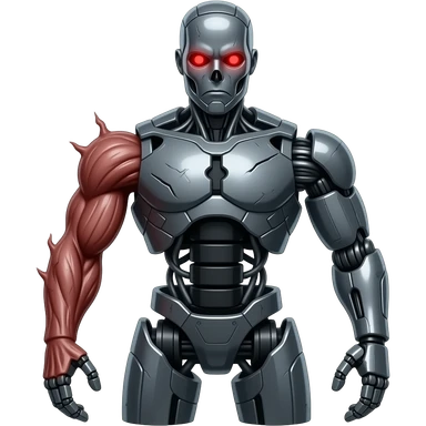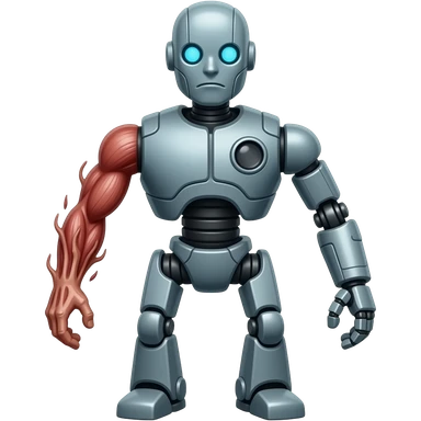 Make a scary looking world destroying robot with a left arm made of human flesh emoji
