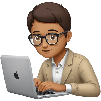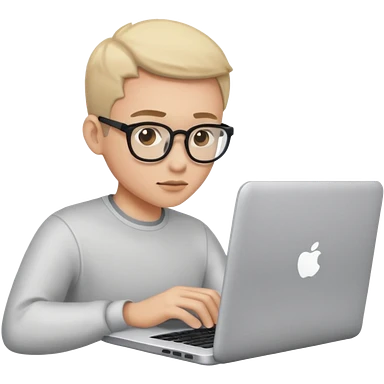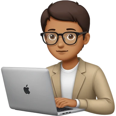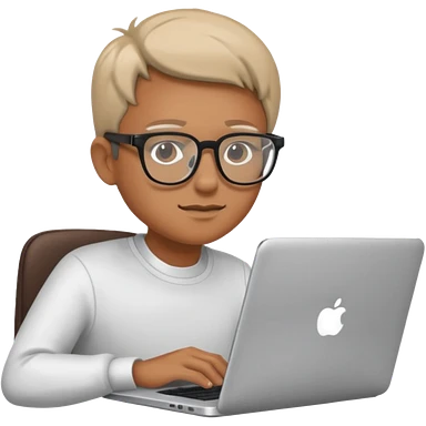 a tech man with sunglasses typing in macbook pro 14 inch emoji