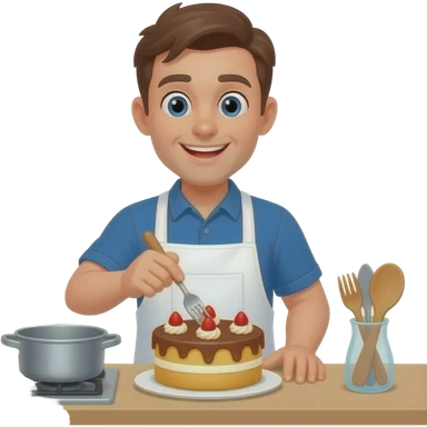 Cartoon bakers man making a cake pricking emoji