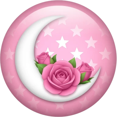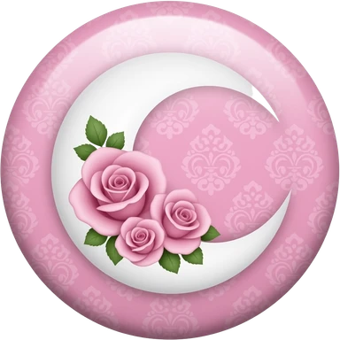 A round pink button with a crescent damask moon and pink roses in the center emoji