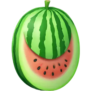 A round watermelon with green rind and a realistic tiger head attached to it emoji | AI Emoji Generator