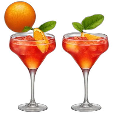 A round wine glass filled with bright red Campari tonic, lots of ice, and a lime wedge on top. emoji | AI Emoji Generator