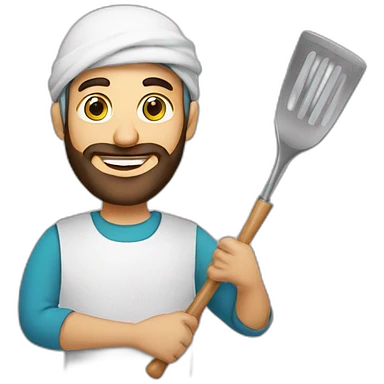 smiling-arab-bearded-man-holding-baby-and-kitchen-tool emoji