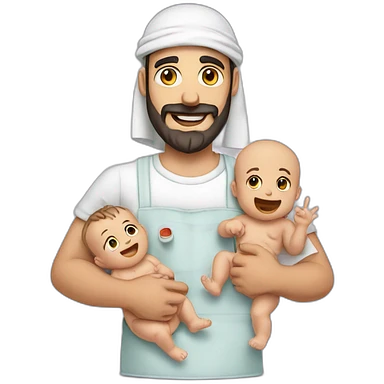 smiling-arab-bearded-man-holding-crying-baby-and-kitchen-tool emoji