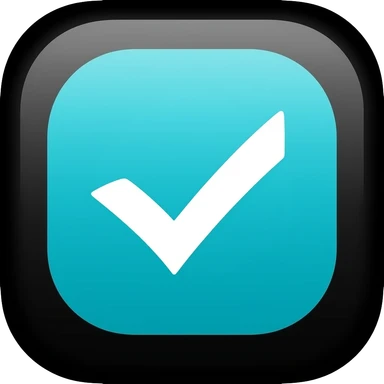 A minimalist 2D flat icon of a checkmark. A solid bright cyan (#4ED2E3) circle centered on a pure black background. Inside the circle, a thick, rounded white checkmark. Clean lines, vector style, high contrast, professional graphic design emoji
