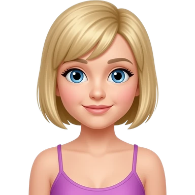 a girl with short blonde hair with pink and purple peekaboo's emoji