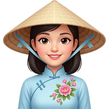A VIETNAMESE LADY STANDING WEARING AN AO DAI WITH A CONICAL HAT emoji
