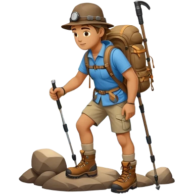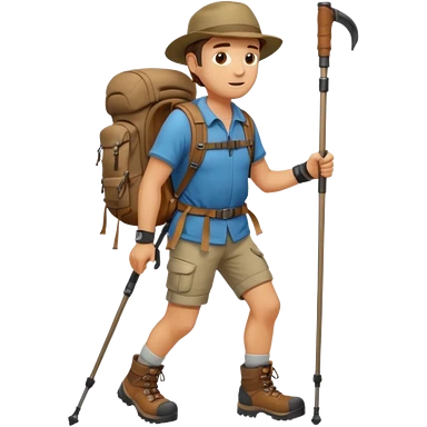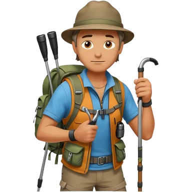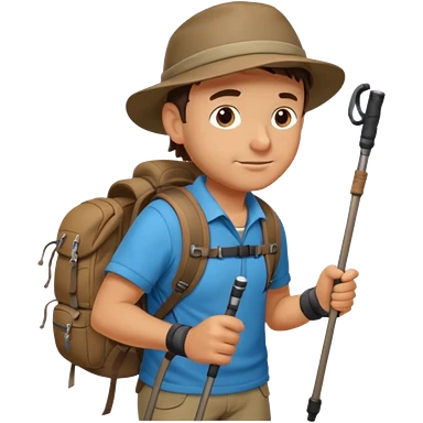 A rugged hiker adjusting hiking poles while preparing for a trek. emoji