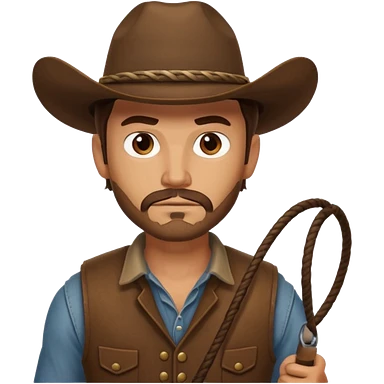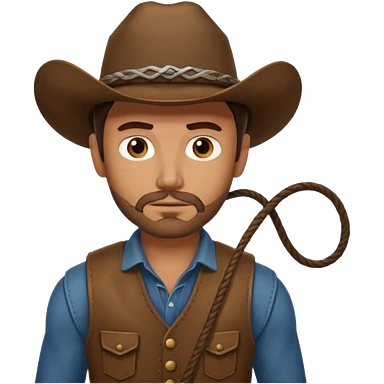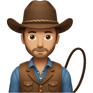A rugged cowboy with stubble, brown vest, and serious eyes as he holds his lasso. emoji
