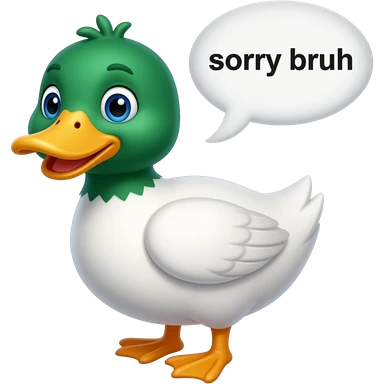 a regular duck emoji 🦆, but it has a speech bubble that says, “sorry bruh” emoji