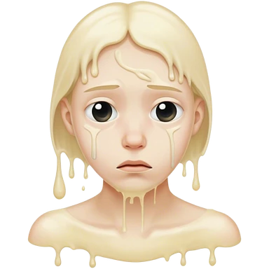 Grimes with drops of white goop on face, elon musk smirking, duo emoji