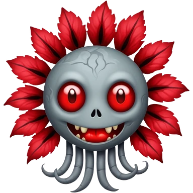 Grey creepy flower with red and blood on inside but as a monster emoji