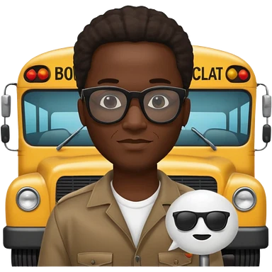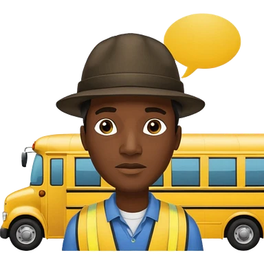 a school bus with a jamaican man saying bomboclat ("BOMBOCLAT' in speech buble) emoji | AI Emoji Generator