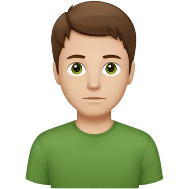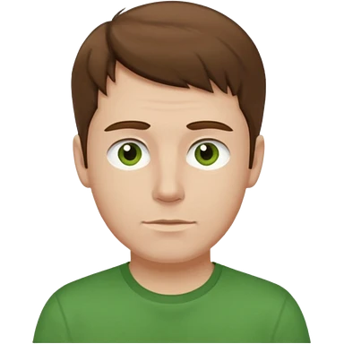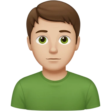 a self asured white male. brown hair. green t-shirt. blue background emoji