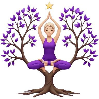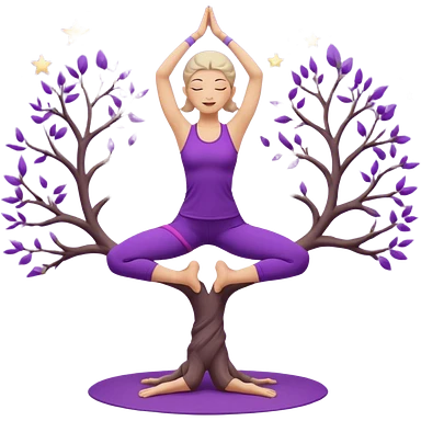A serene woman wearing purple yoga clothes balancing in tree pose, stars around her, meditative aura. emoji | AI Emoji Generator