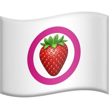 a white flag with a strawberry on the flag. the strawberry has a pink ring surrounding it on the flag emoji