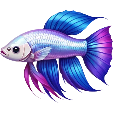 A white beta fish with blue purple and pink fins emoji