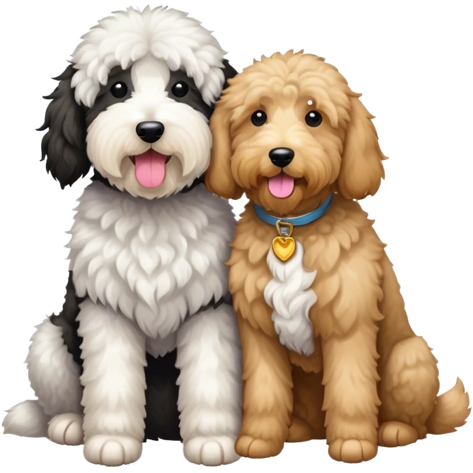 Gray and white sheepadoodle and an apricot goldendoodle emoji