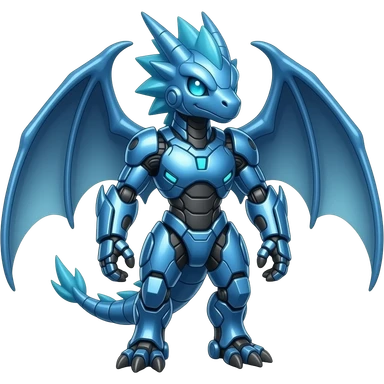 a shiny blue Genesect-Flygon-Raptor-Fakémon—hybrid with a futuristic visor-helmet full body emoji | AI Emoji Generator
