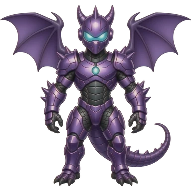 a shiny black-purple-red Genesect-Flygon-Raptor-Fakémon-Medabot-hybrid with a futuristic visor-helmet full body emoji