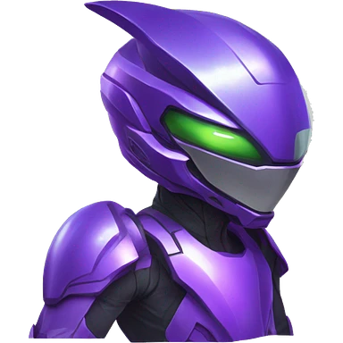 a shiny purple-green-redGenesect-Raptor-Fakémon—hybrid with a futuristic visor-helmet full body emoji