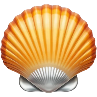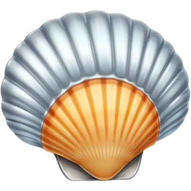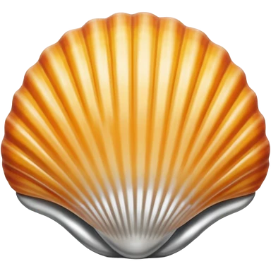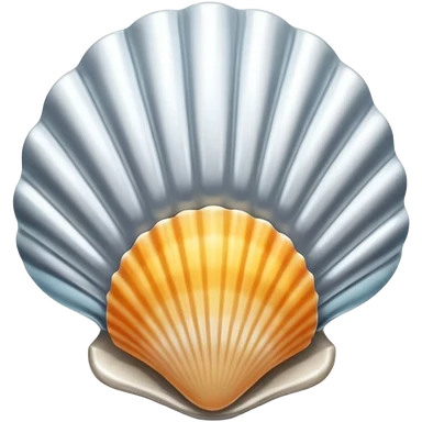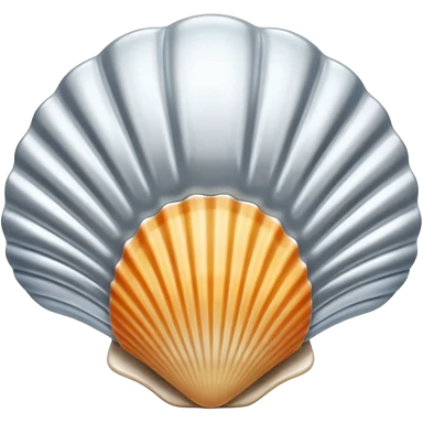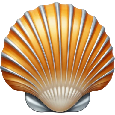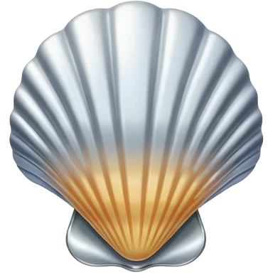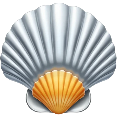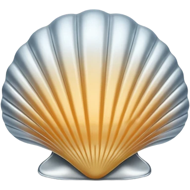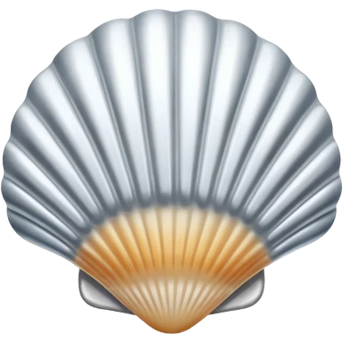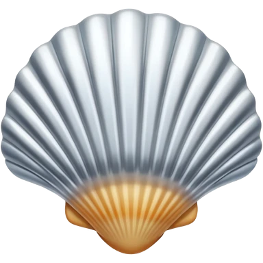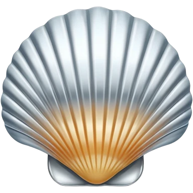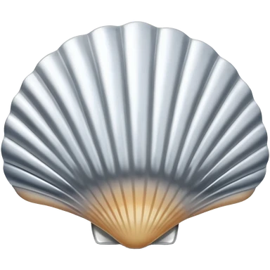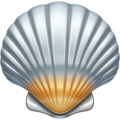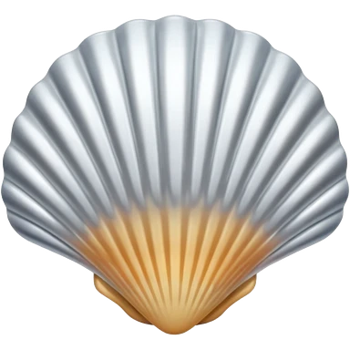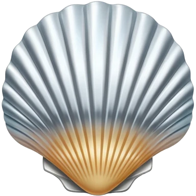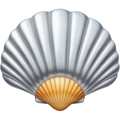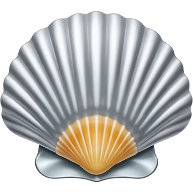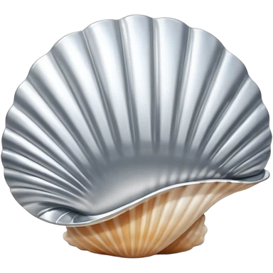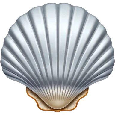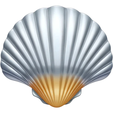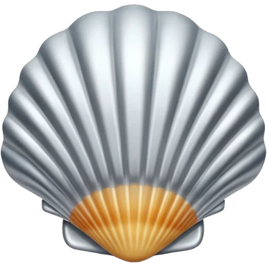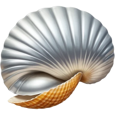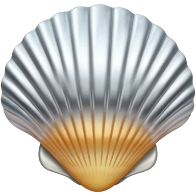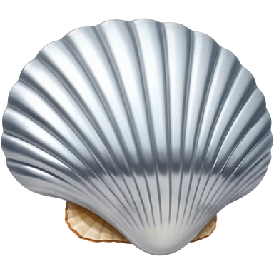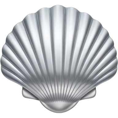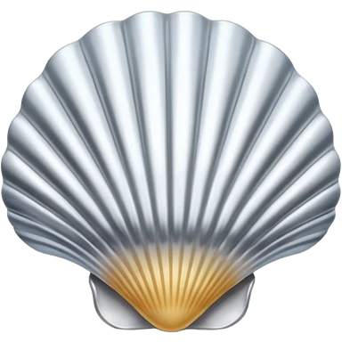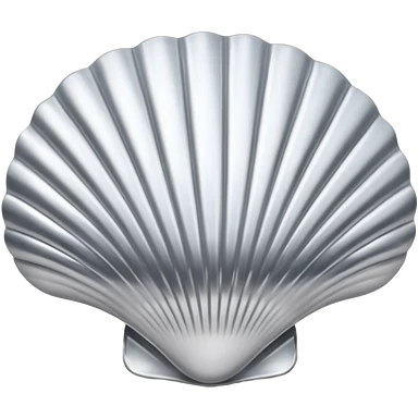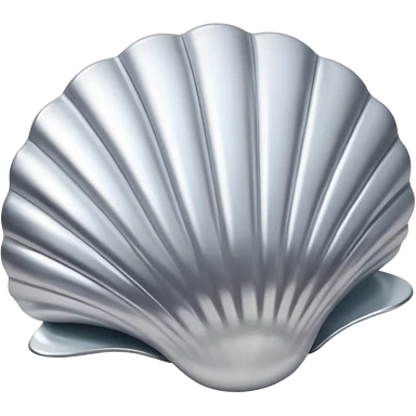 A seashell emoji made of polished silver chrome, smooth curved surface, reflective metallic highlights, elegant minimal design, iOS emoji style, centered, clean white background, soft lighting emoji