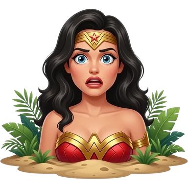 a shocked wonder woman in jungle quicksand emoji | AI Emoji Generator