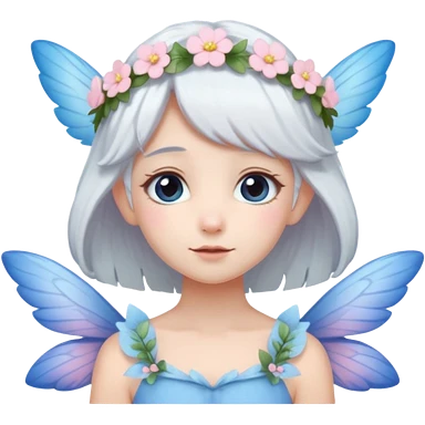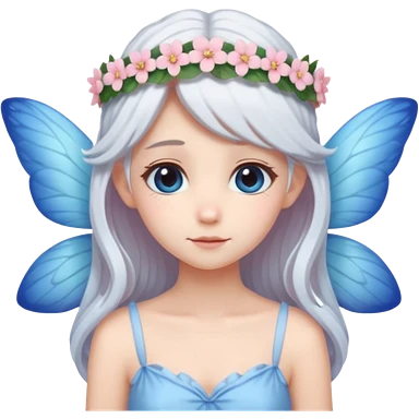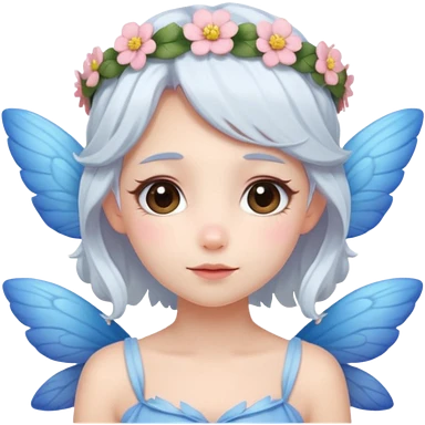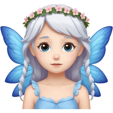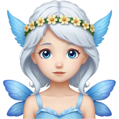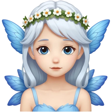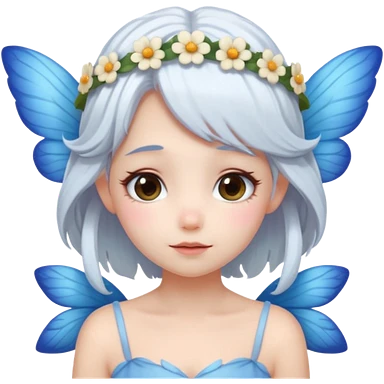 A shy white hair fairy with soft blue wings with flower smallcrown emoji