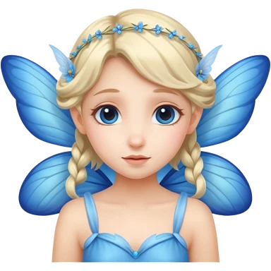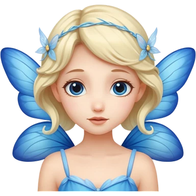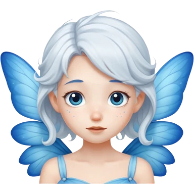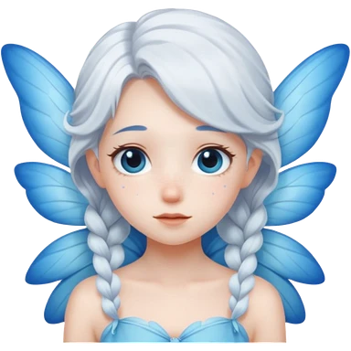 A shy white hair fairy with soft blue wings emoji