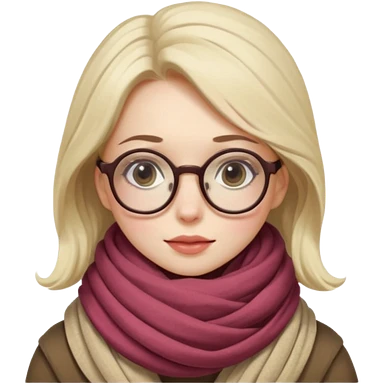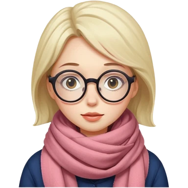 A shy woman with big round glasses and thick scarf, blushing from the cold. emoji