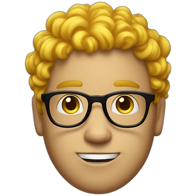a silly boy with black eyeglasses and curly yellow hair on top less hair and white skin emoji
