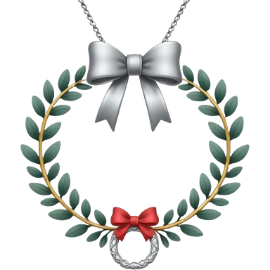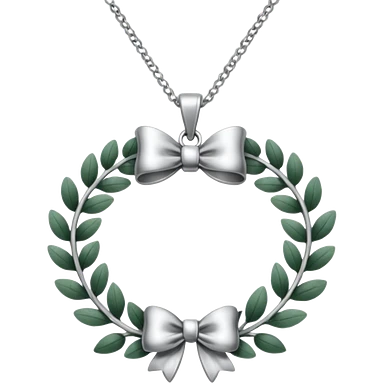 A silver necklace with a wreath shaped pendant and a bow at the top emoji | AI Emoji Generator