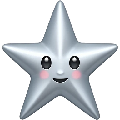 Create a silver star emoji identical to the classic gold star emoji (⭐️). It should match the same size, shape, and smooth shading, but in metallic silver. Keep the design simple and glossy, just like the original Apple star emoji. Rounded ends emoji