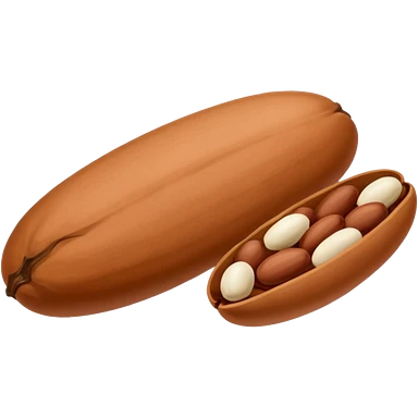 A simple 3D color illustration of a single cocoa bean with cut open, with realistic shading and texture, on a pure white background.