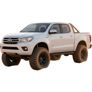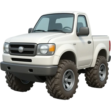 Design a high-quality 3D emoji-style illustration of a white mini-pickup truck (dabbab). Make it look rugged with chunky sand tires, simple clean lines, and a white background so it looks like a sticker emoji